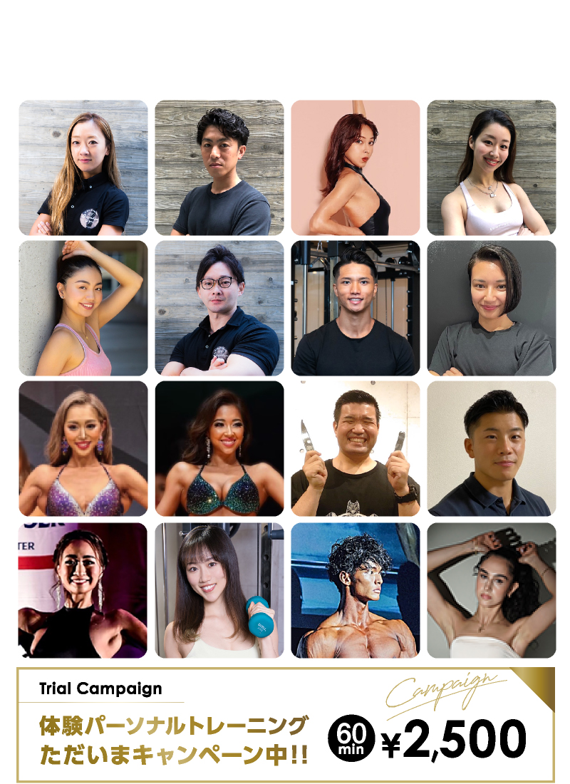 大手や有名ジムから独立した人気・実力のあるトレーナー陣が多数在籍。